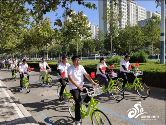 為倡導(dǎo)綠色文明出行,傳播“低碳生活、綠色出行、文明出行”的生活理念,提升市民參與環(huán)保行動的積極性,進(jìn)一步促進(jìn)城市生態(tài)和諧發(fā)展,9月22日由濰坊市城市管理局、濰坊市市政公用事業(yè)服務(wù)中心主辦,常州永安公共自行車運(yùn)營有限公司濰坊分公司承辦的2019年“世界無車日”慶祝新中國成立70周年騎行活動暨第三代公共自行車投放儀式在人民廣場成功舉辦,共計150余位熱心市民參加了本次主題騎行活動,并集體合唱《歌唱祖國》和《義勇軍進(jìn)行曲》,慶祝新中國成立70周年。