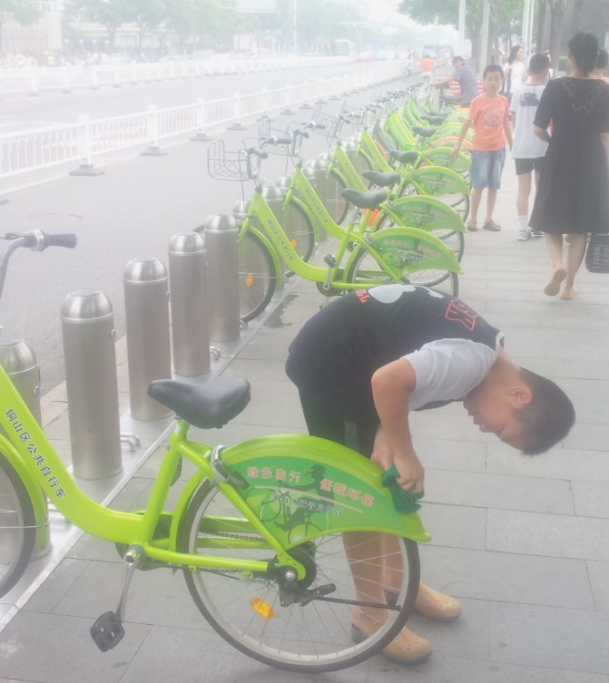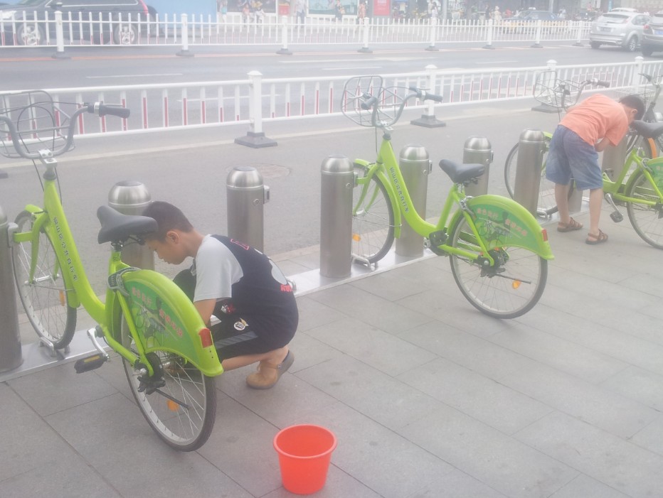 公園巷小學四一班學生利用暑假業(yè)余時間,去古彭廣場義務(wù)勞動擦洗公共自行車,這種優(yōu)良的美德值得每一位市民學習。