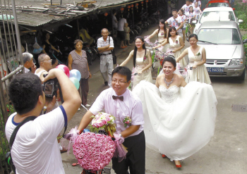 “現(xiàn)在很多新人結(jié)婚,在場面上大都會選用汽車車隊,有條件的家庭更少不了豪車開路。可是我想,要是和大多數(shù)人一樣,這么有紀(jì)念意義的一天就會顯得遜色。為了讓我們結(jié)婚當(dāng)天更有意義,也考慮到兩家距離很近,婚前3個月左右,我們就商議并決定用自行車代替汽車,用人力代替油門。”昨天早晨7點30分,劉擎整裝待發(fā)前把他和新娘的迎親創(chuàng)意講給記者聽。他說,這個提議最初遭到了雙方父母的反對,“他們覺得這樣太寒酸,不好看”,多虧了一對新人不停勸說,最后全家才欣然答應(yīng)。