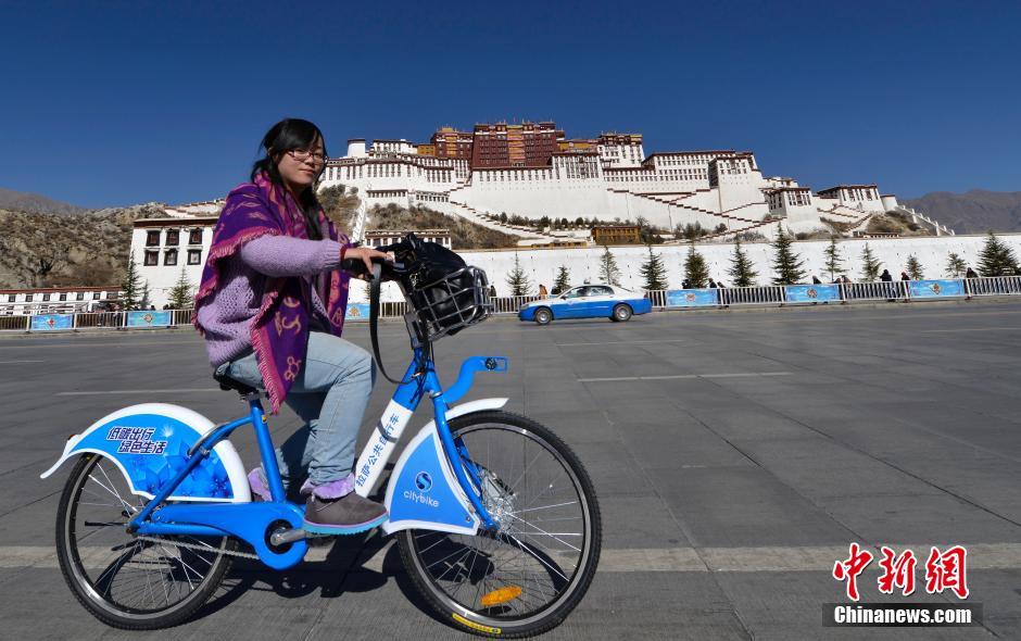 11月28日,內(nèi)地游客王伊騎行公共自行車經(jīng)過布達(dá)拉宮。