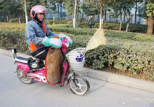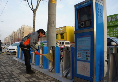 清晨6時(shí)50分,夜色還未褪去,一輛小型電動(dòng)車緩緩駛向阜師院新校區(qū)公共自行車站點(diǎn),騎車的人是阜陽市公共自行車管理中心的巡檢員李莉,今年38歲。她的主要工作,是每天奔波于雙清路、二道河路、清河西路三條路段14個(gè)站點(diǎn),因此電動(dòng)車成了她最快捷的交通工具,車筐里還放置著一塊抹布、一罐水桶和一把小笤帚。“巡檢員的工作就是每天檢查站點(diǎn)的車輛、設(shè)備和保潔,并配合完成調(diào)度工作”。與記者簡單地認(rèn)識(shí)后,李莉開始了一天的工作。