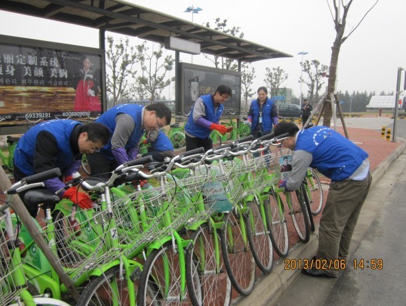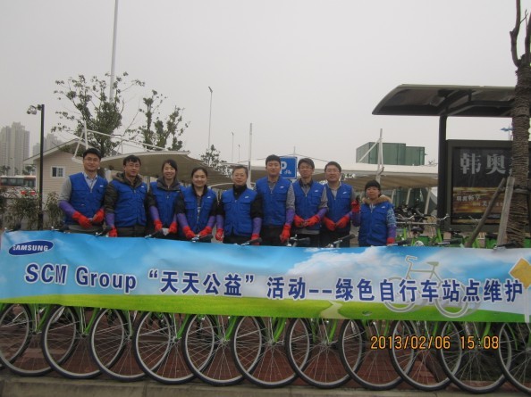 在活動(dòng)現(xiàn)場有些自行車需要調(diào)整零件的,懂自行車維護(hù)的同志就自告奮勇的站出來擔(dān)當(dāng)這個(gè)任務(wù),有些自行車需要清潔工作的,就拿起抹布認(rèn)真仔細(xì)地擦試,不一會(huì)兒工夫一個(gè)又一個(gè)站點(diǎn)在他們熟練的動(dòng)作中形成一道道美麗的風(fēng)景線。三星顯示器有限公司率先從自身做起,將環(huán)保理念深入員工帶動(dòng)市民,以實(shí)際行動(dòng)支持環(huán)保事業(yè)。