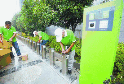4、還車時要將車稍微提示扶正后推入車樁,再刷卡待語音提示后,將卡收回;
